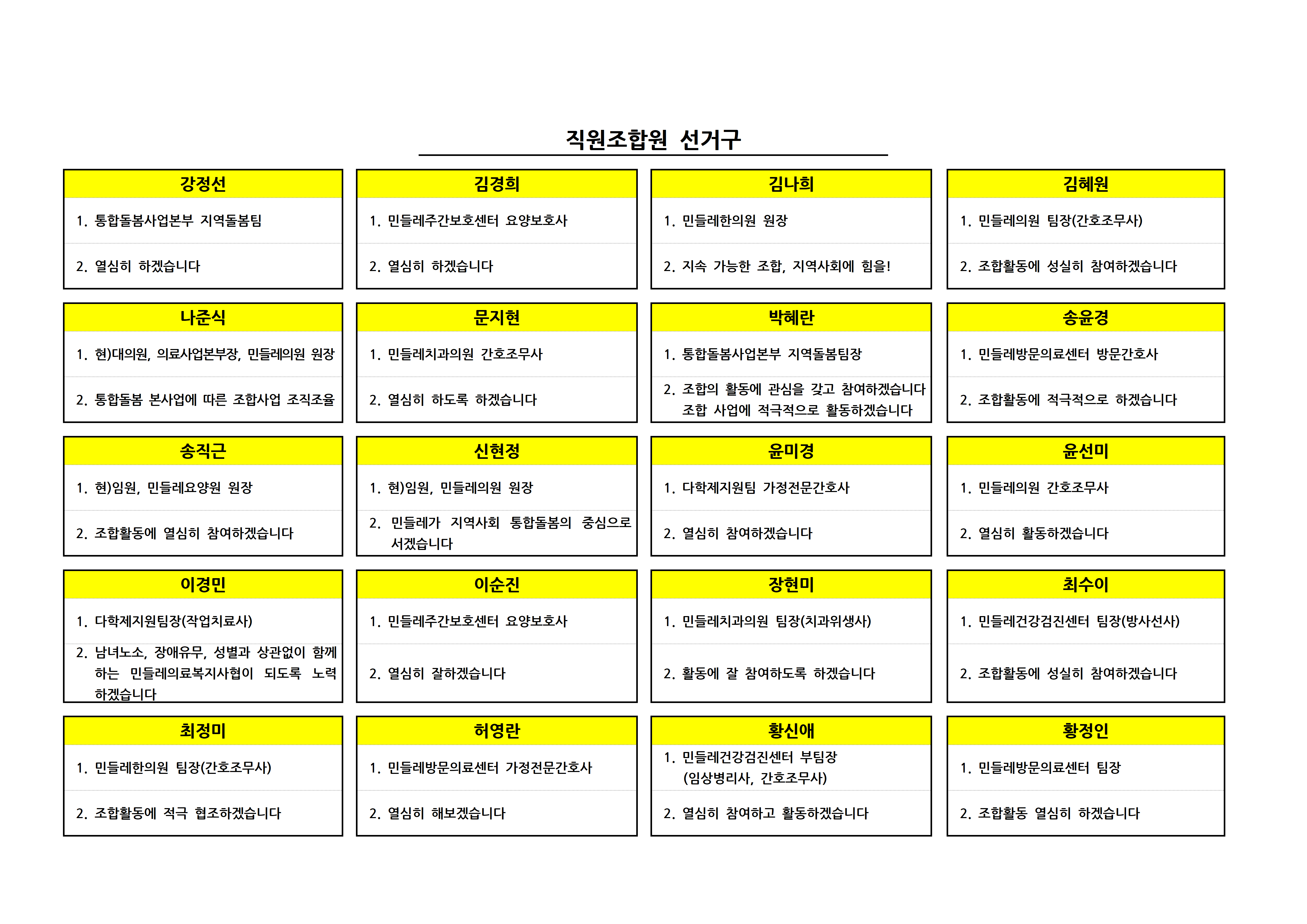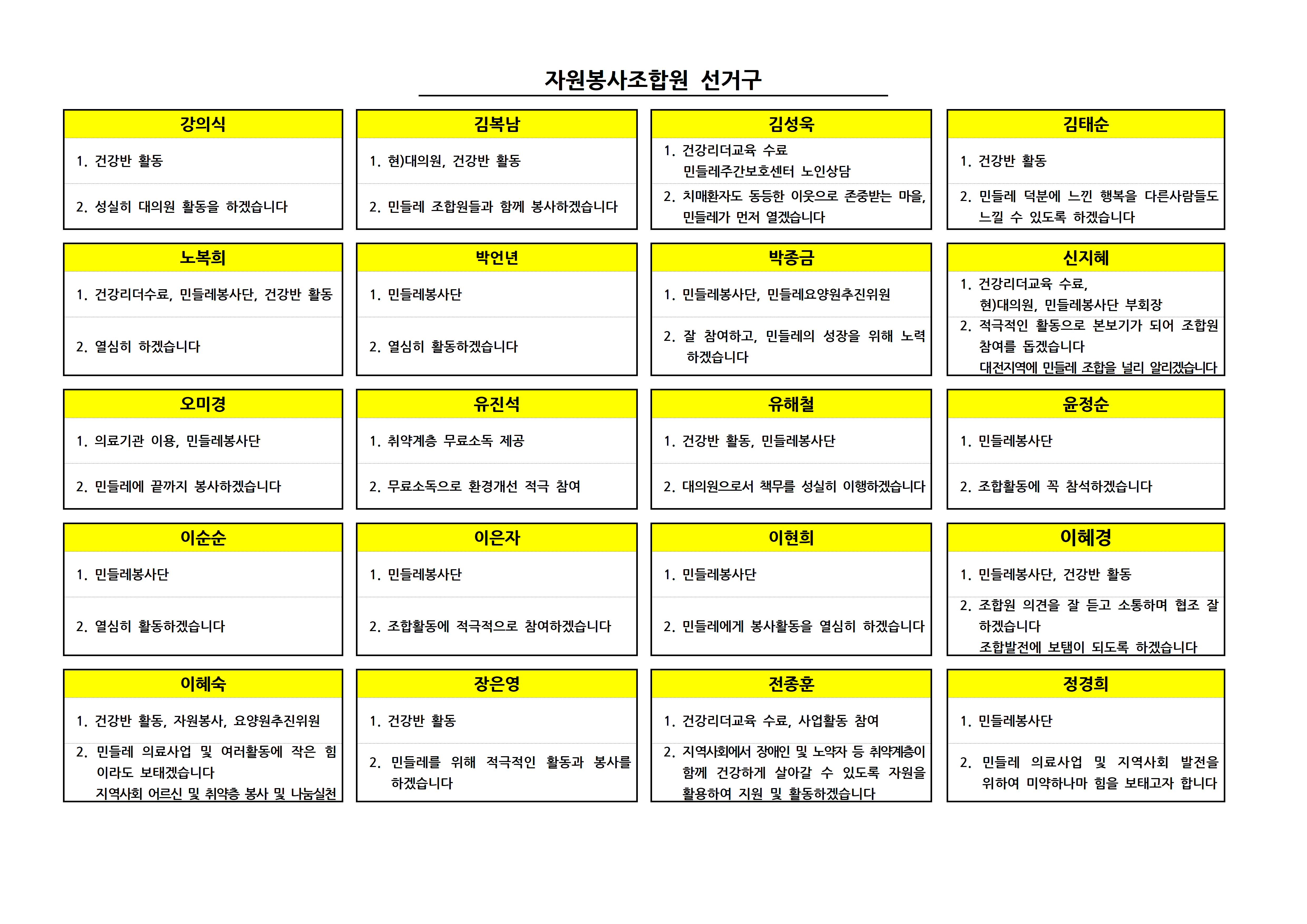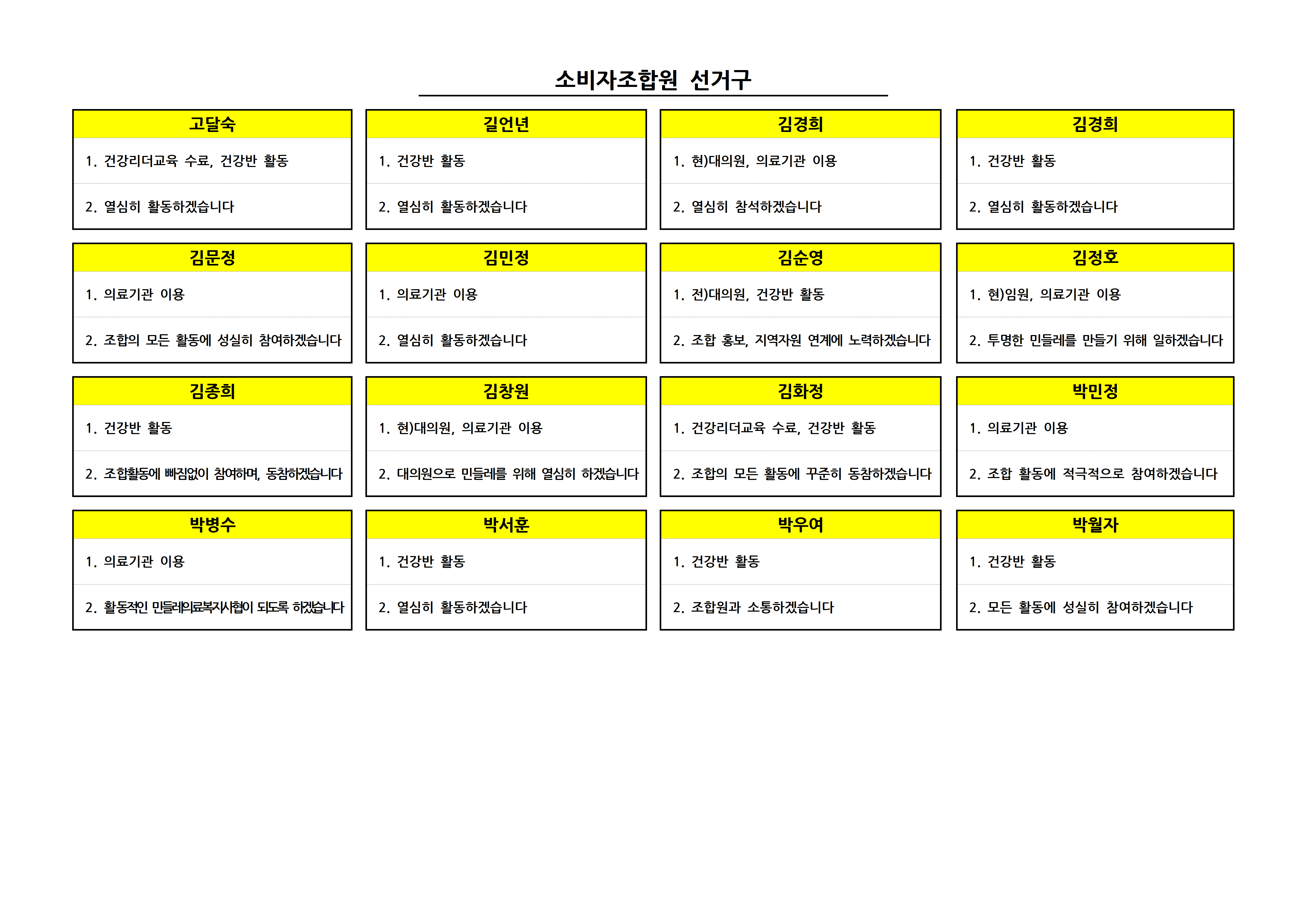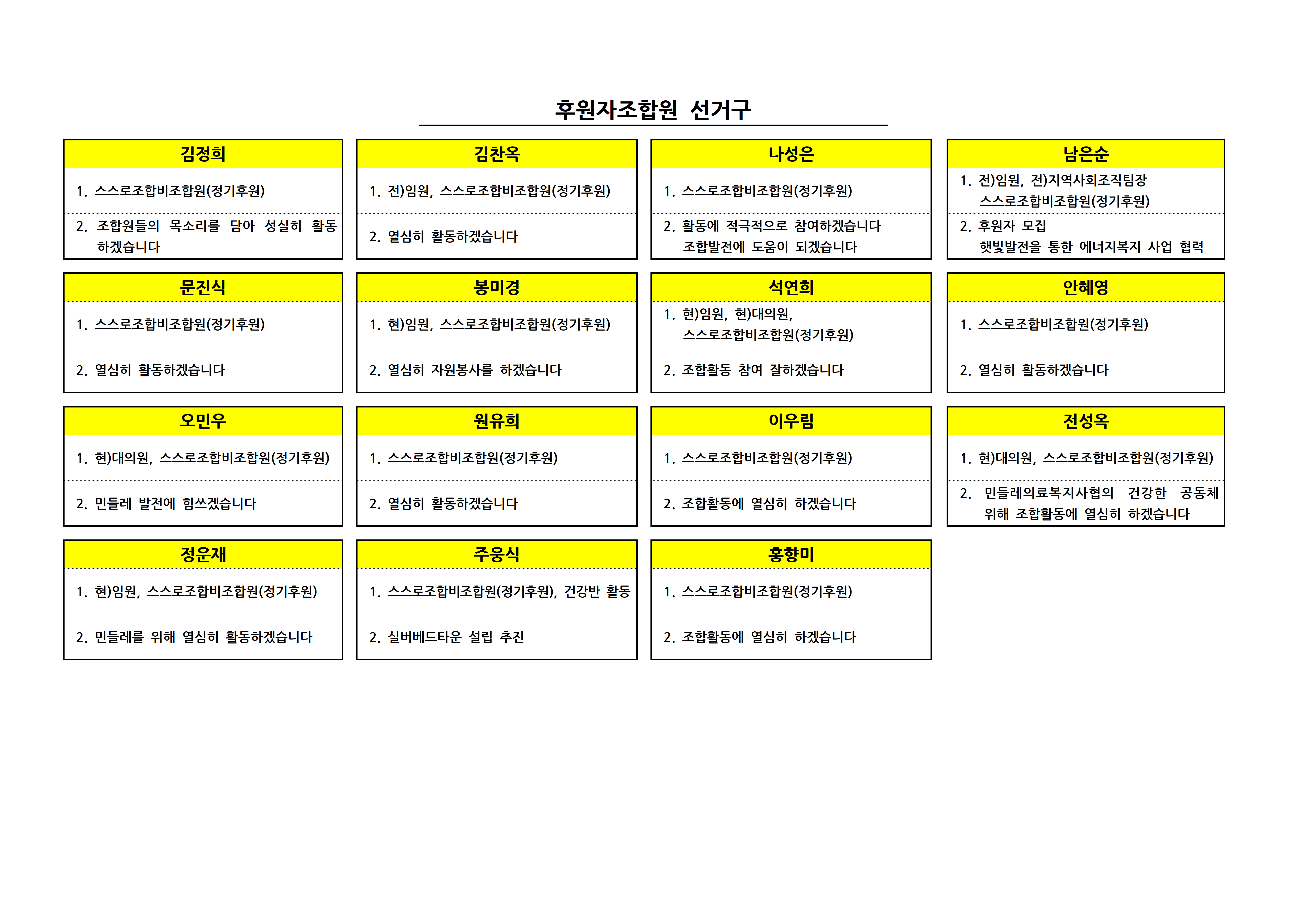 제10기 대의원 선거 입후보자 선거구별 공보