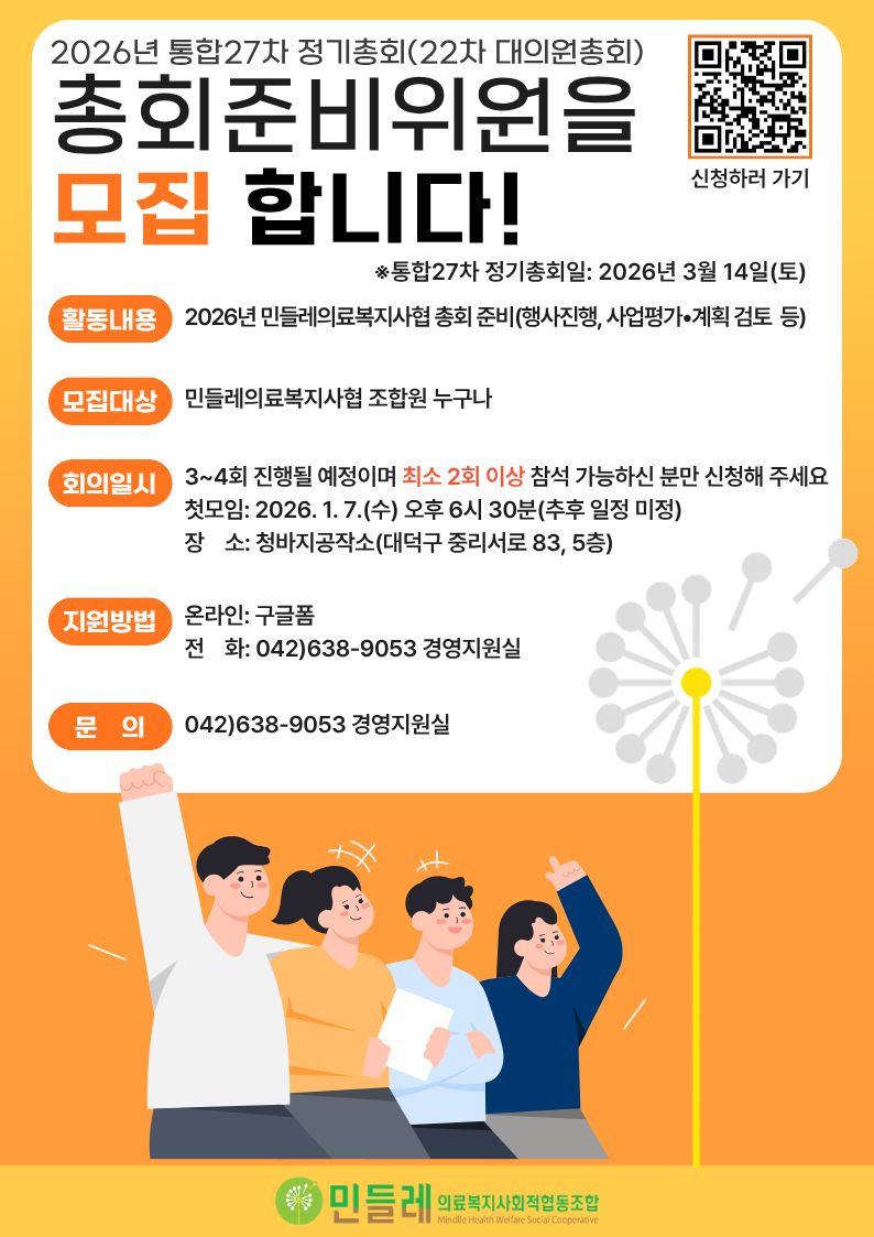 | 작성자 | 민들레의료복지사회적협동조합(mindlle) | 작성일 | 2025-12-22 | 조회수 | 2477 |