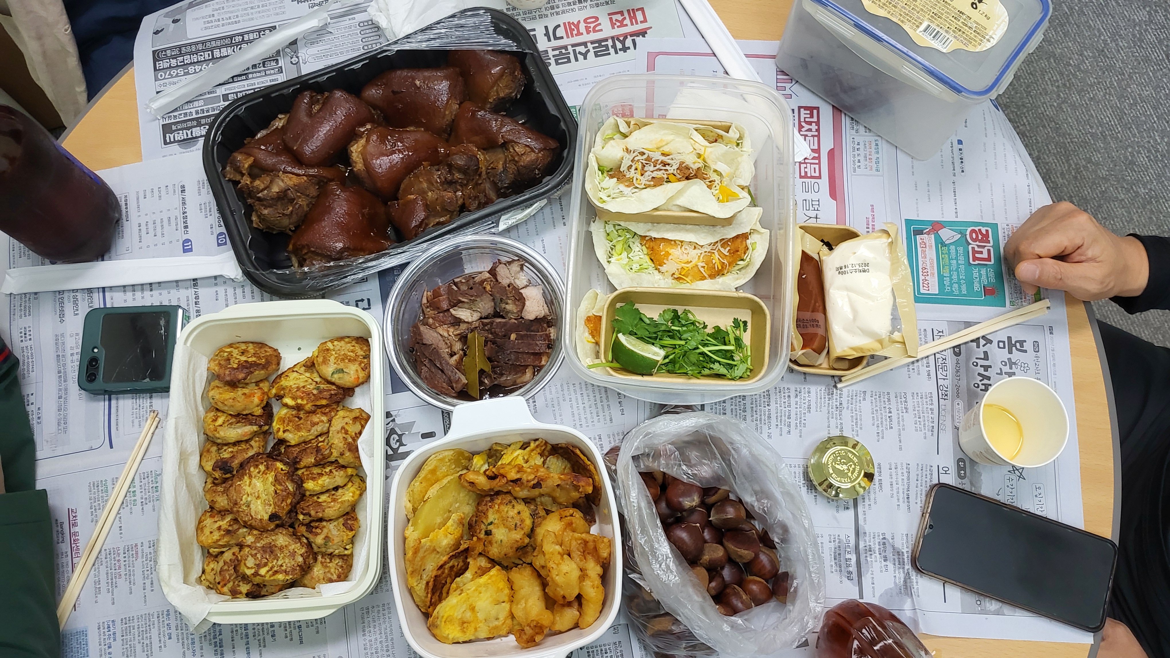 추석을 맞이하여 건강반 반원이 직접 정성스럽게 요리한 음식을 들고와서 음식나눔 행사를 갖았습니다. 동그랑땡, 족발, 모듬전,과일 등등 맛있는 음식을 먹으며 올 한해동안 건강반 활동한 이야기로 웃음꽃을 피웠습니다. 웃고 즐기는 것도 또한 건강이라 생각합니다. 함께하였기에 더 기쁨이 컸으며, 함께 나누었기에 행복이 배가 되었습니다. 가끔 손수만든 음식으로 나눔행사를 통하여 우리 건강반이 화합하고 발전하길 소망합니다.